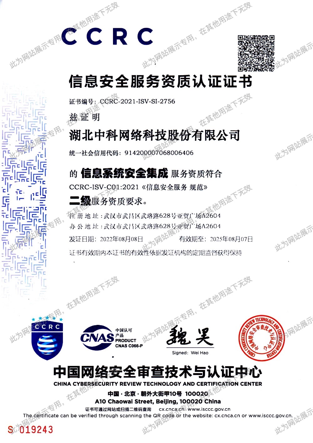 湖北中科網(wǎng)絡科技股份有限公司成立于1998年5月,注冊地為武漢市武昌區(qū),總部位于中國光谷。是智能化、信息化行業(yè)的領軍企業(yè),國家認定的高新技術企業(yè)、湖北省專精特新企業(yè)。